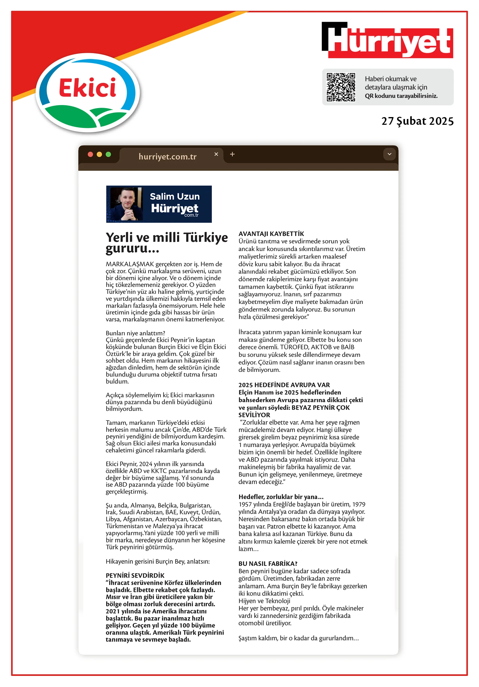 - Ekici Süzme Peynir’e Uluslararası Arenada 10 Yıllık Lezzet Ödülü