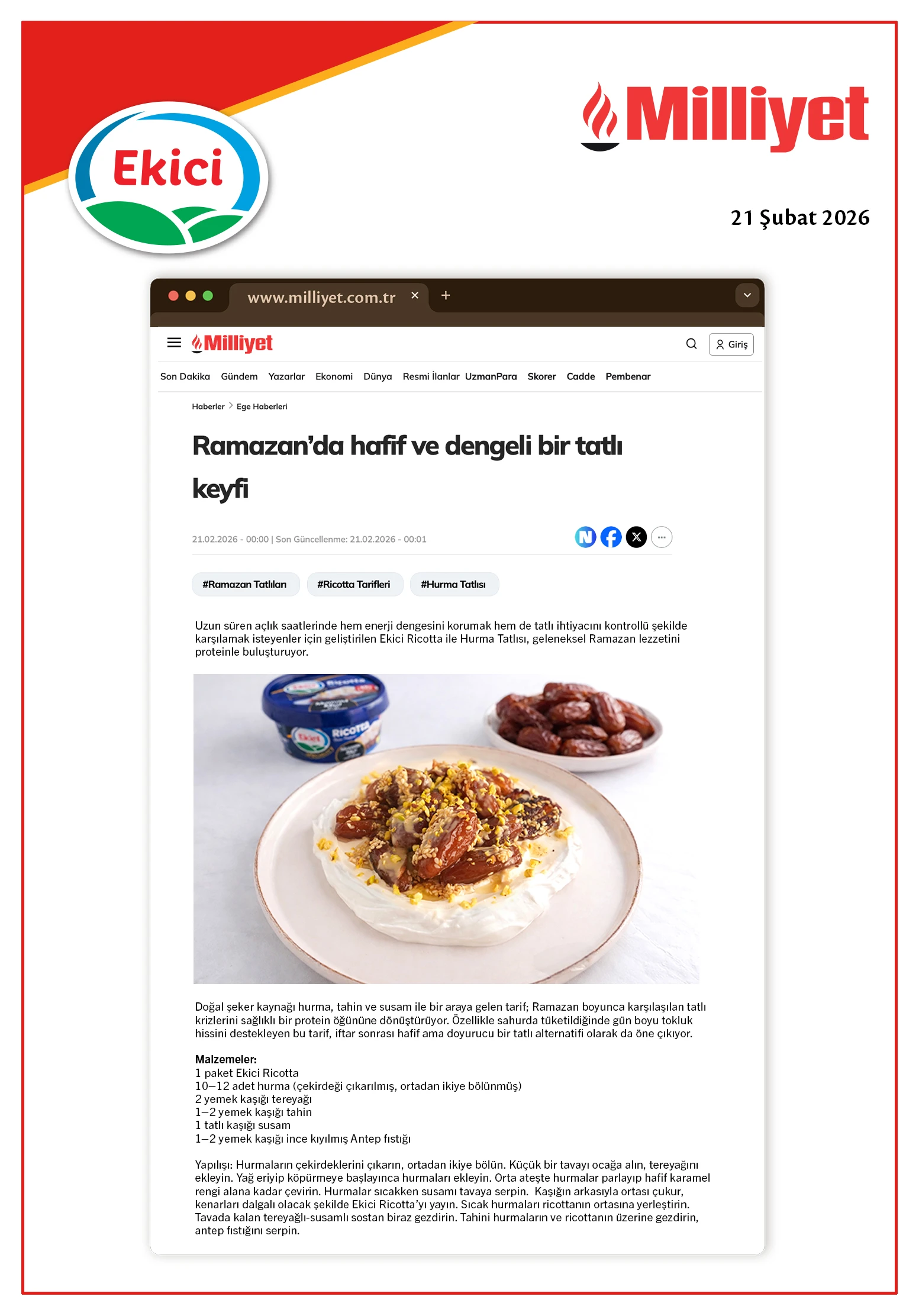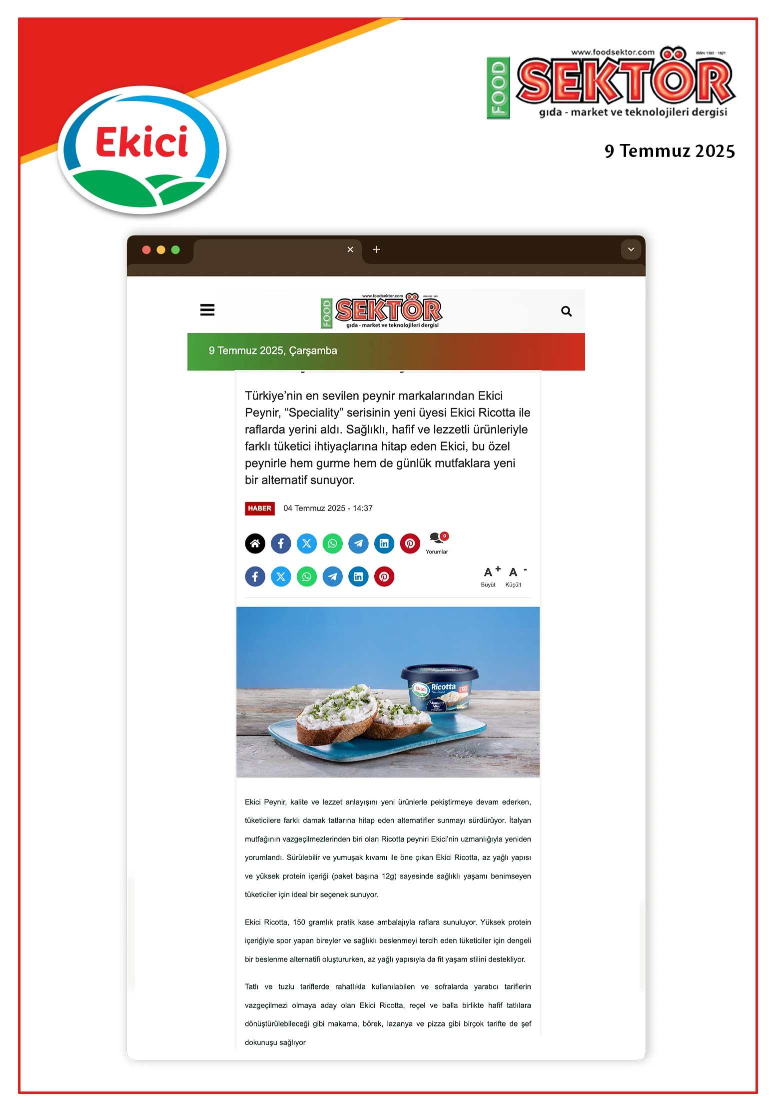 - Ekici Peynir "Ricotta" şimdi raflarda