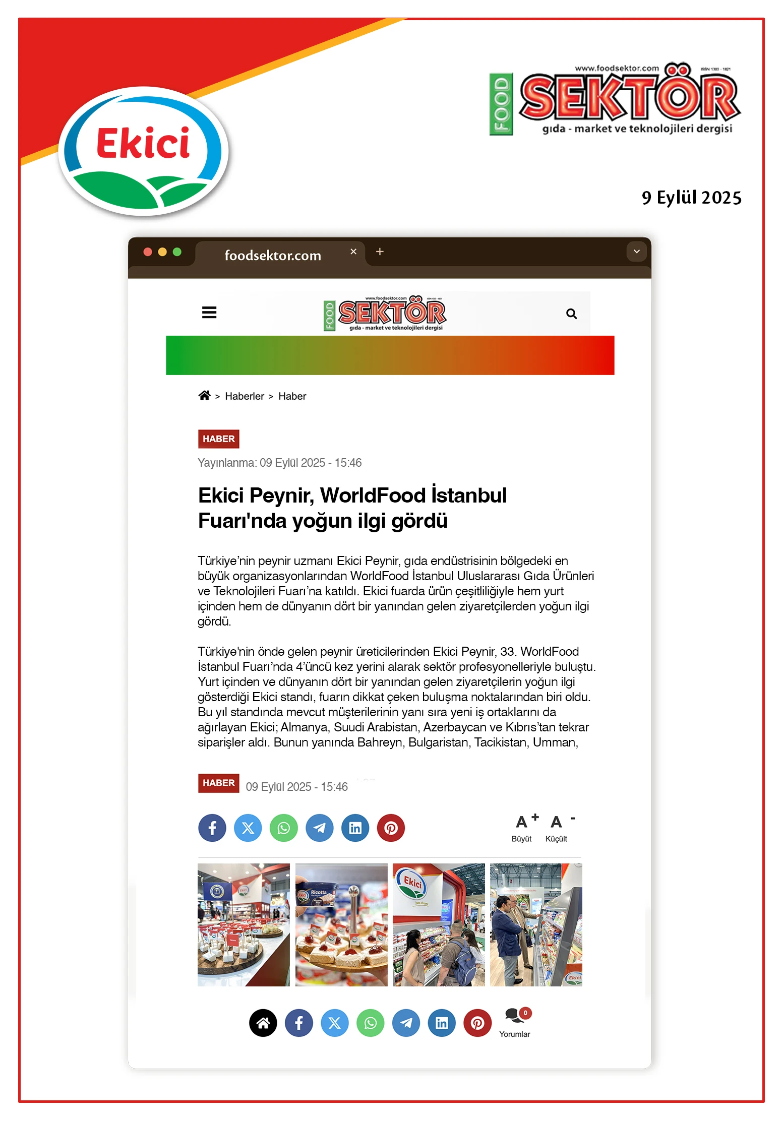 - Ekici Peynir, World Food İstanbul Fuarı'nda yoğun ilgi gördü