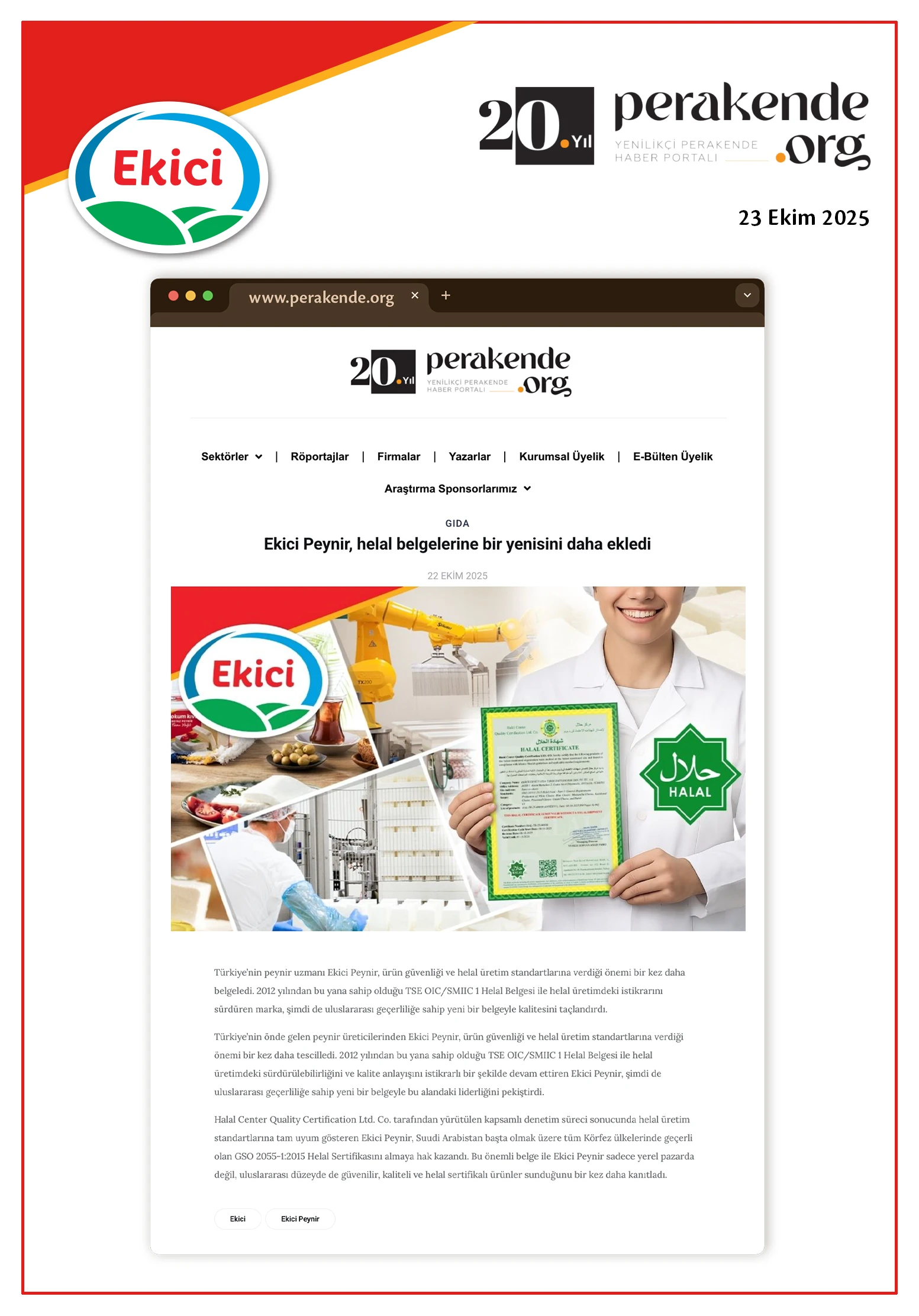 - Ekici Peynir, helal belgelerine bir yenisini daha ekledi