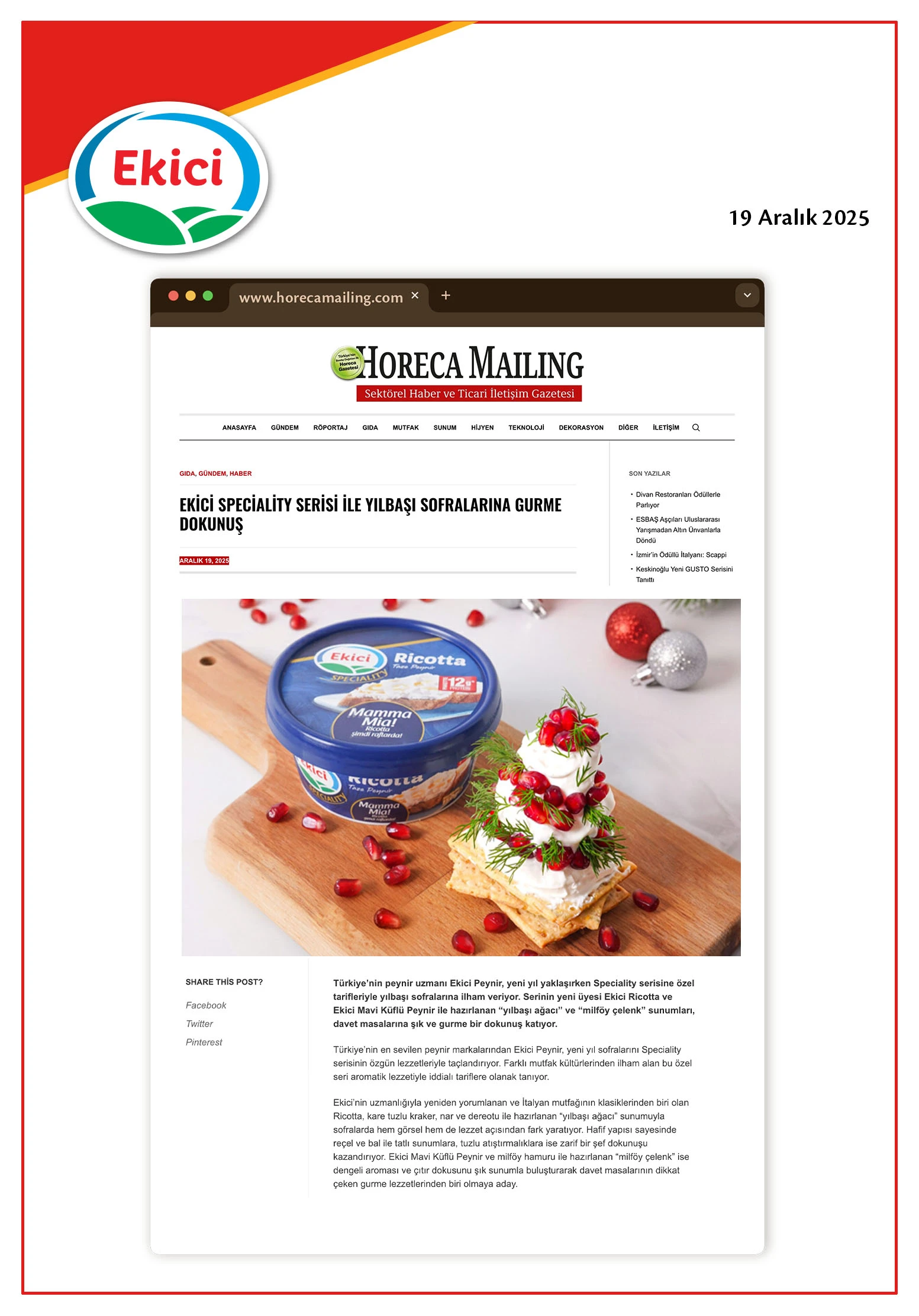 - Ekici Speciality Serisi ile yılbaşı sofralarına gurme dokunuş