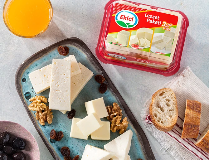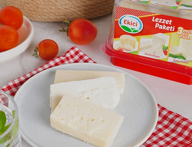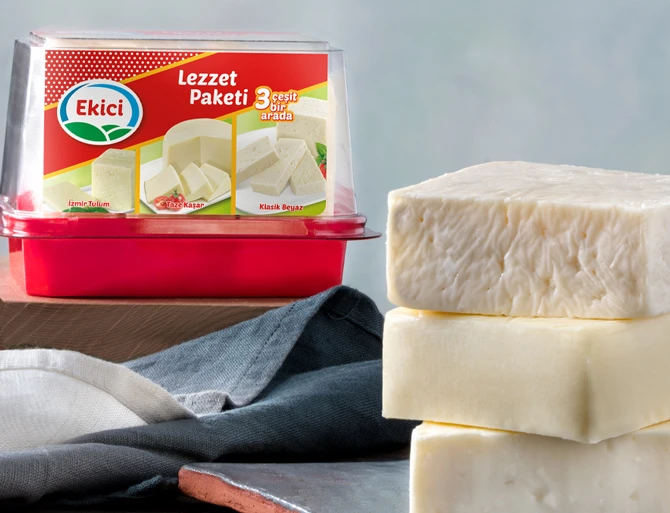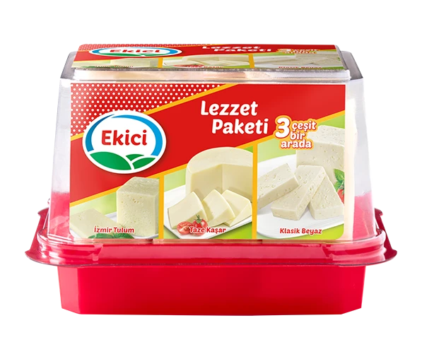 Yarım asırlık deneyimiyle en kaliteli sütlerden sadece peynir üreten Ekici, bu ürünü ile tek bir pakette 3 ayrı peynir lezzeti sunuyor. Lezzet Paketi’nde sevilen ürünler Klasik Beyaz Peynir, Taze Kaşar ve Tulum Peyniri bir arada yer alıyor.
